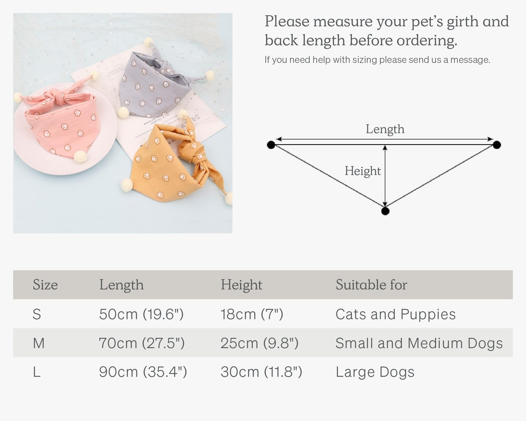This super cute bandana is a perfect gift idea for both dog and cat lovers. Made of soft and comfortable cotton, it's gentle on your pet's skin. Available in three pastel colors, you can choose the one that suits your furry friend best. And for that extra special touch, we offer custom pet name embroidery, allowing you to personalize the bandana. Make your pet stand out with this charming and stylish accessory!