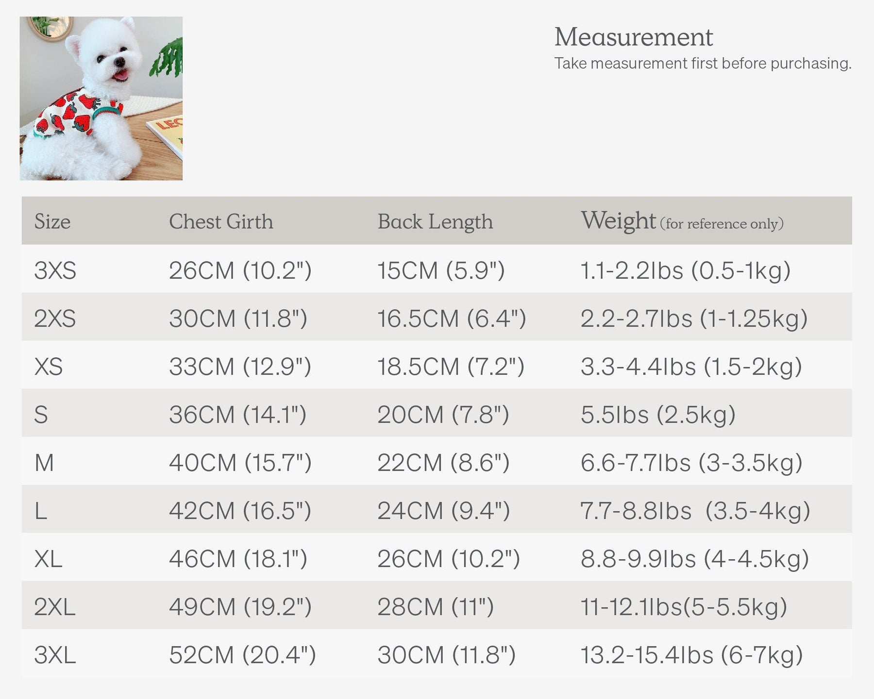 If you're unsure about the size, please add your pet's chest girth and back length measurements in the "Add Order Note" section at cart. We'll verify the sizes before shipping to ensure the perfect fit.