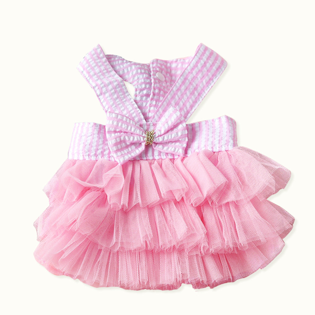 Vestido de tul de una pieza para mascotas con lazo en la espalda