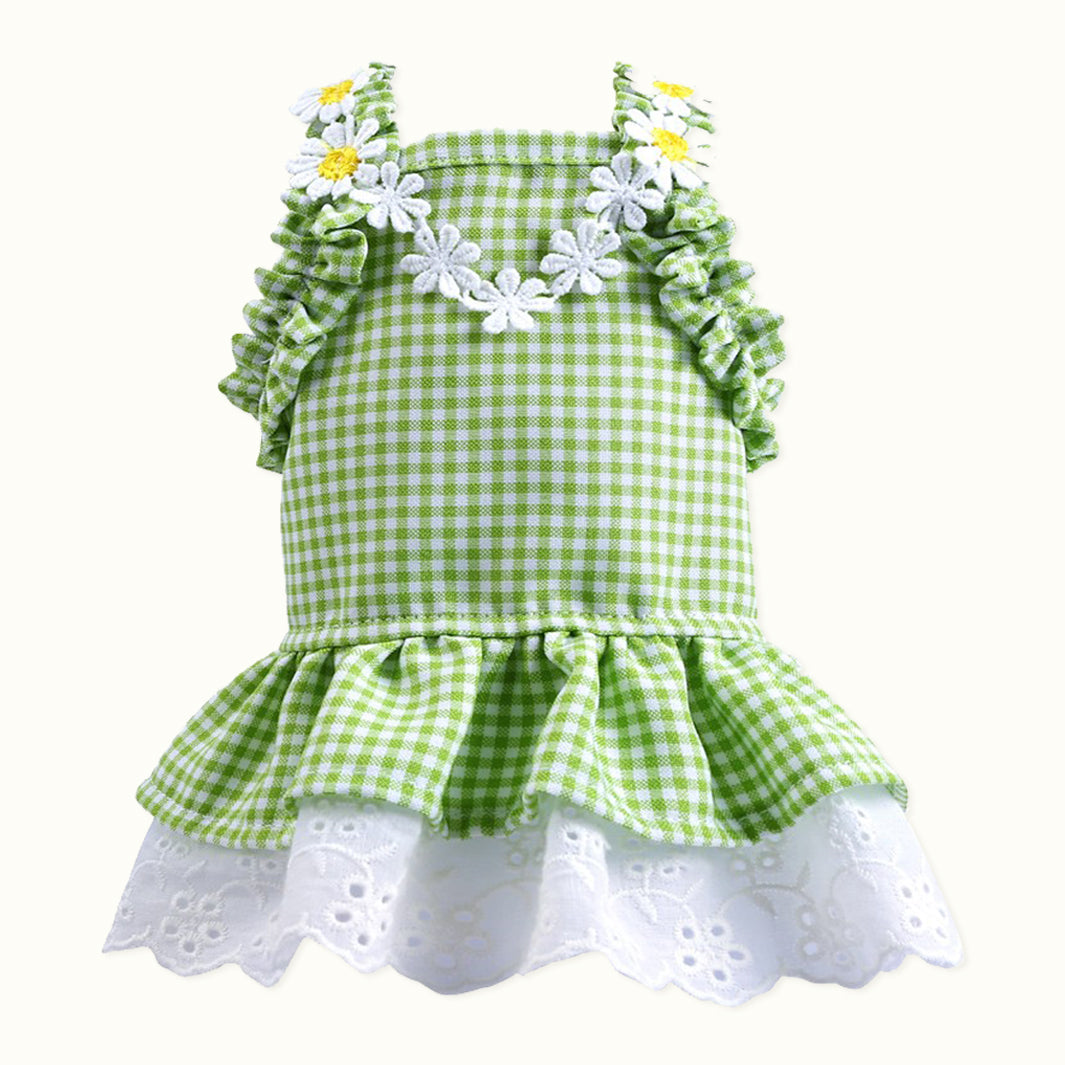 Vestido para mascotas Daisy con cuello halter y cuadros vichy