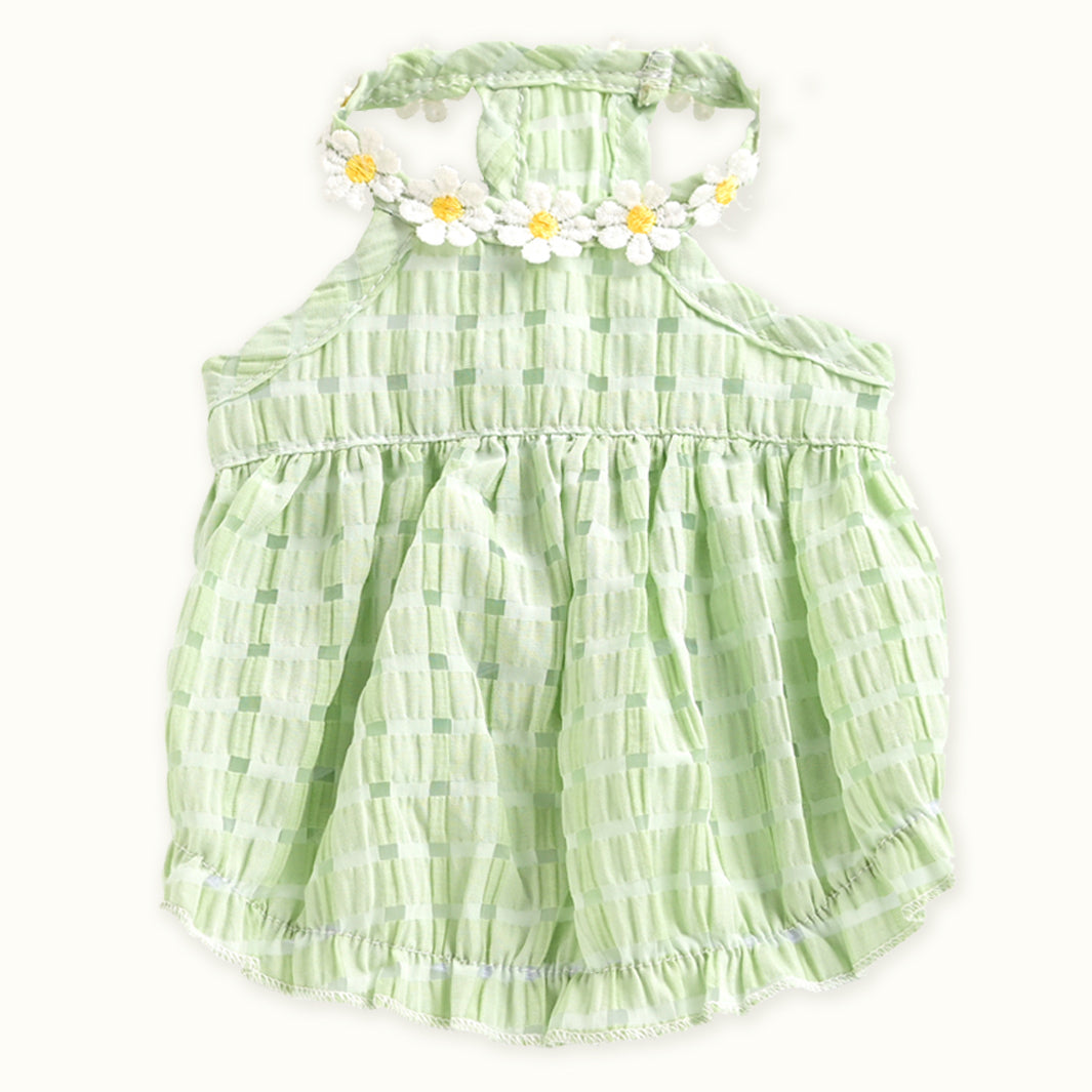 Vestido para mascotas con cuello halter y margaritas