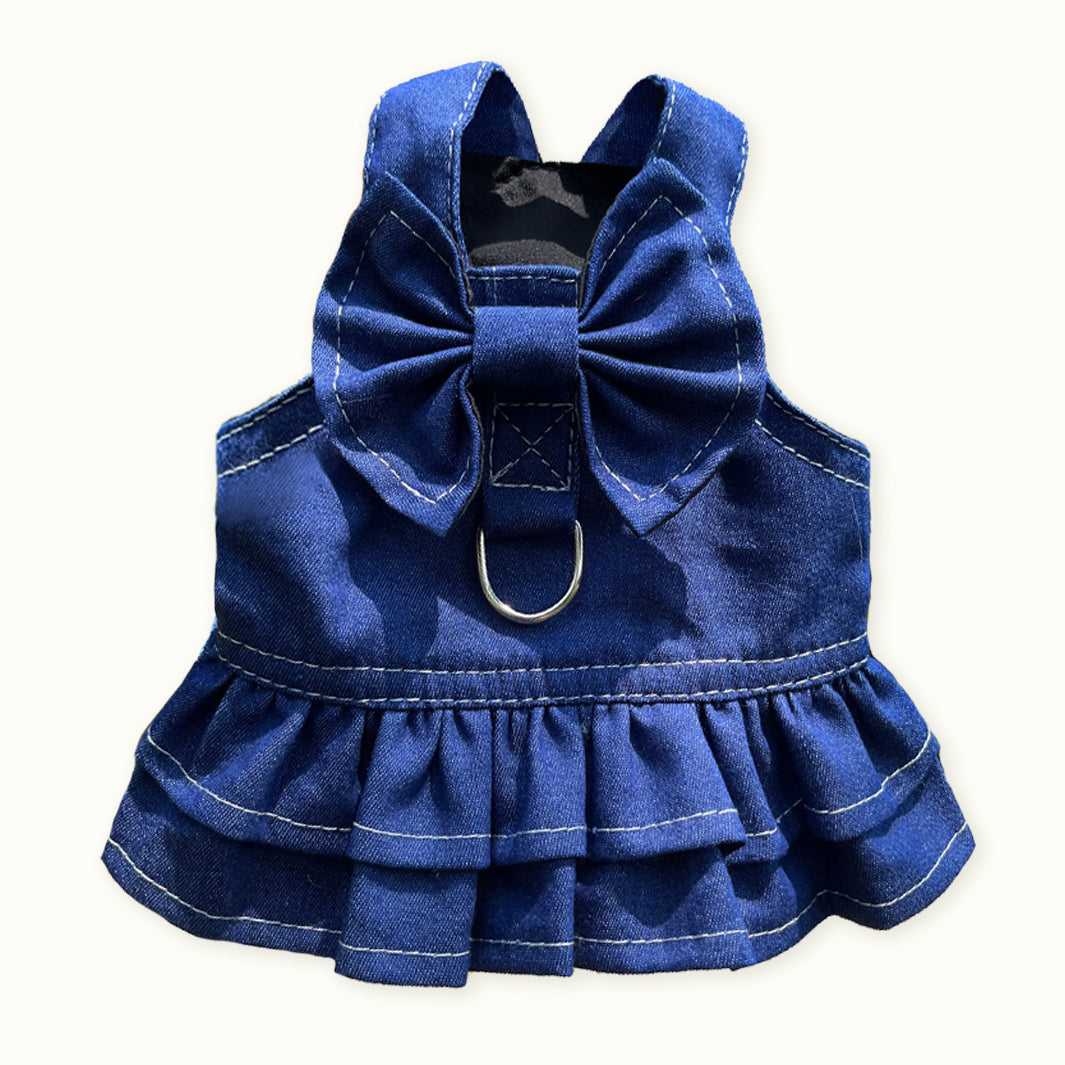 Vestido vaquero para mascotas, camisa para mascotas con lazo