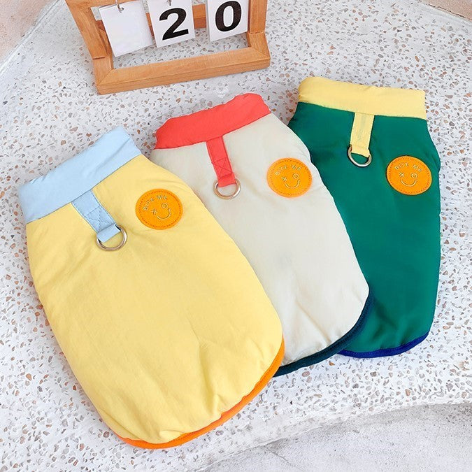 Chaleco tipo chaqueta para mascotas con botones de macarrón