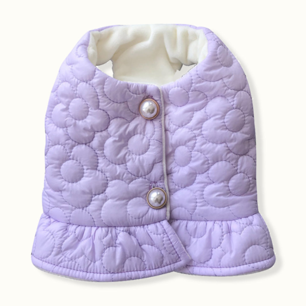 Chaqueta para mascotas con botones de perlas y punto de flores