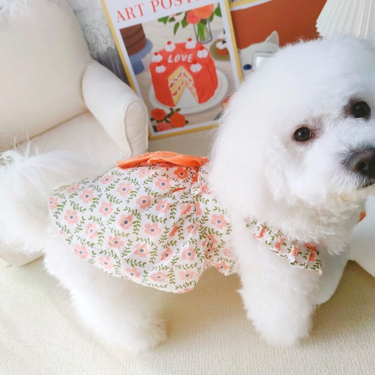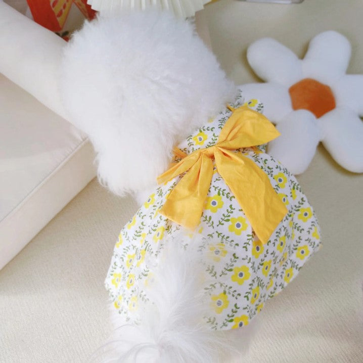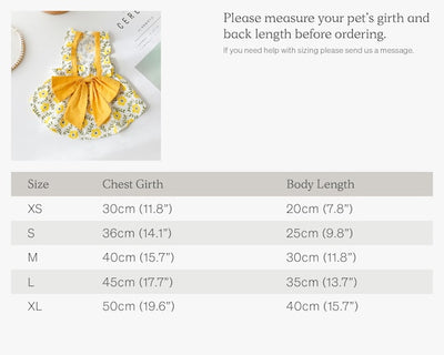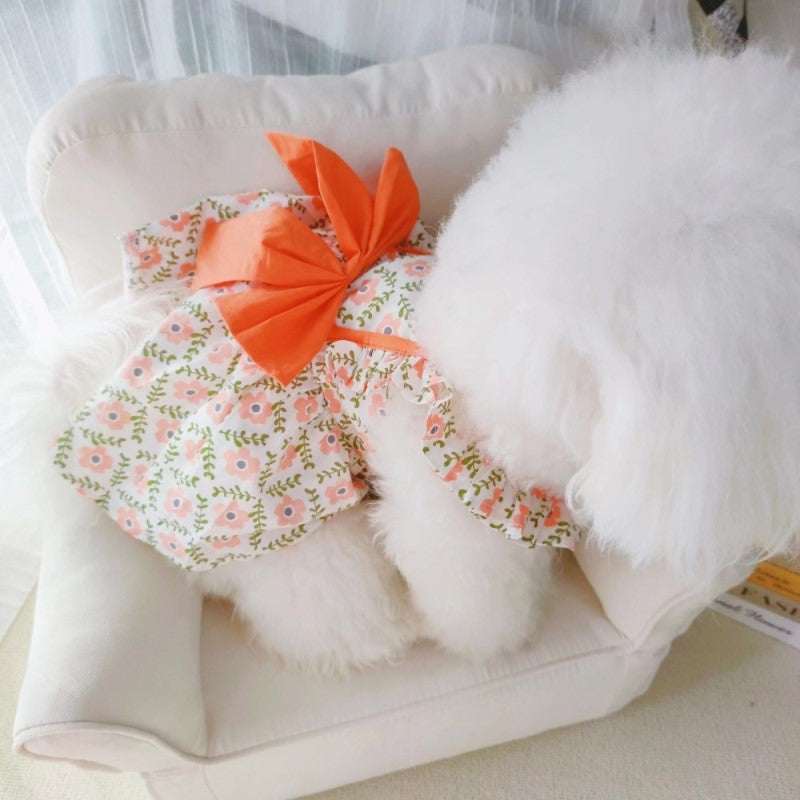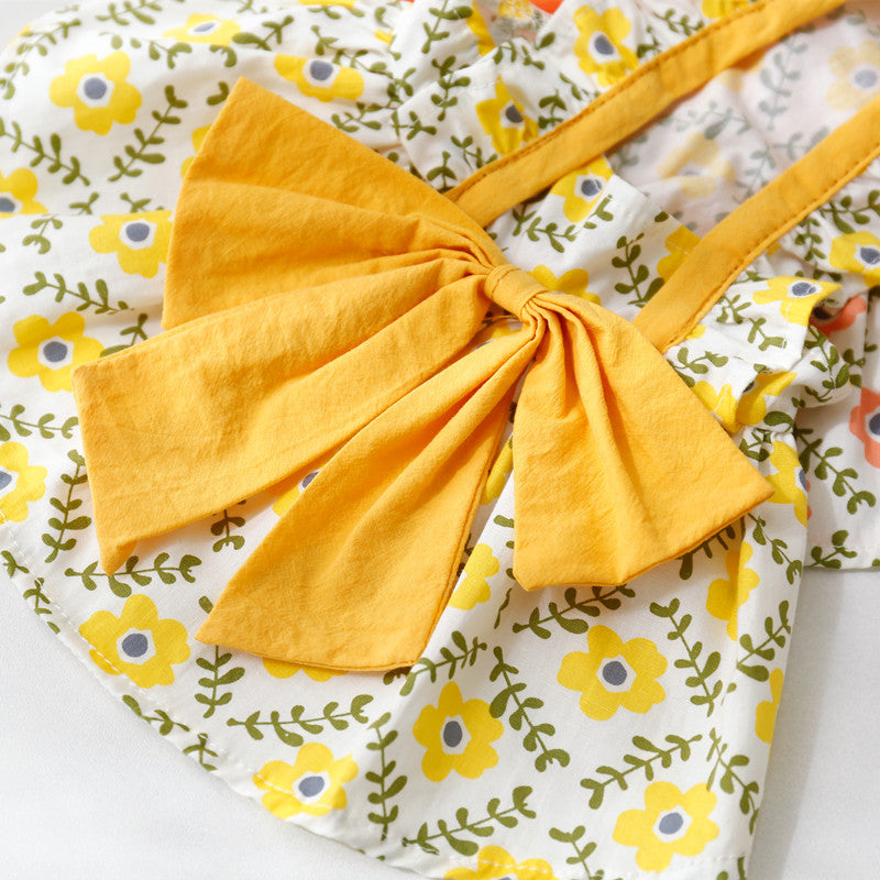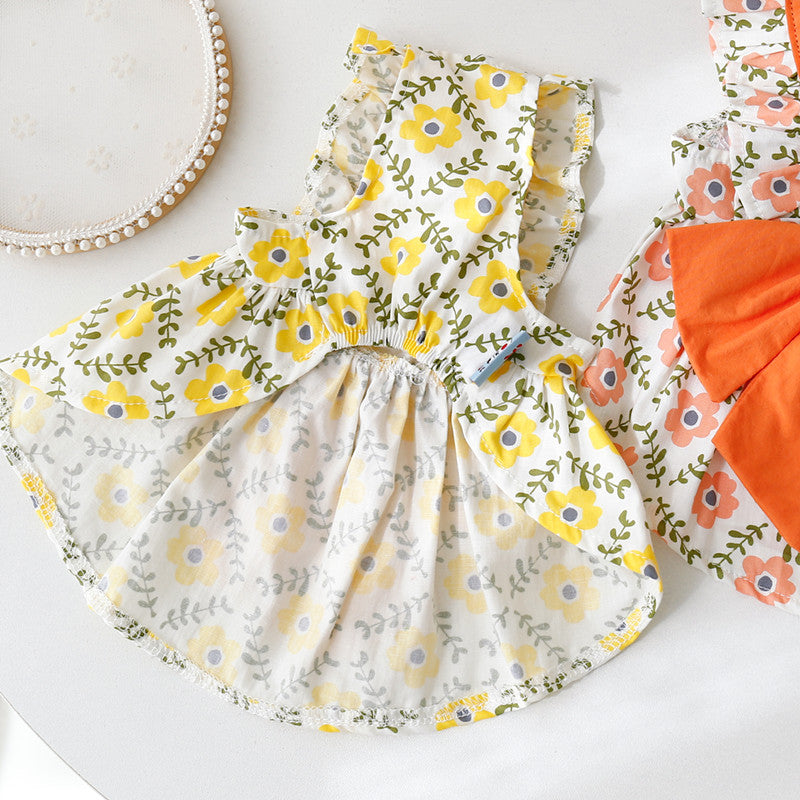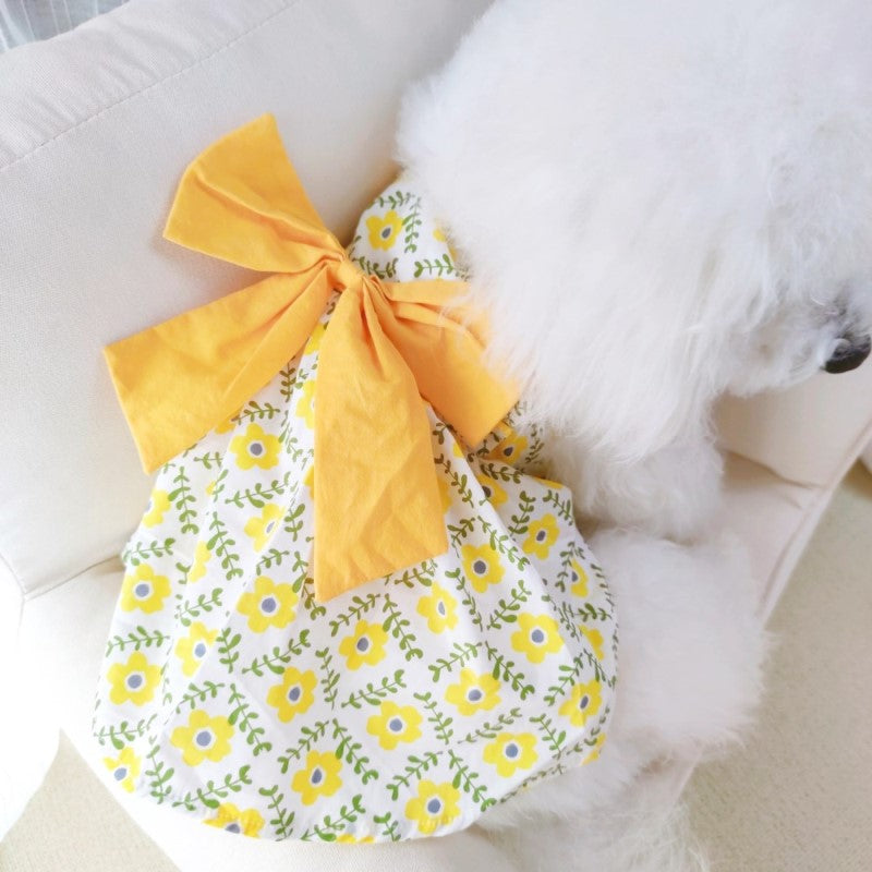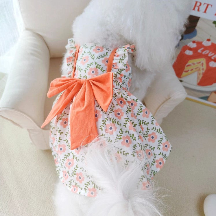 This Big Bow Flower Pet Dresses is designed with your pet's comfort in mind, made from soft cotton fabric that is gentle on their skin. The dress features elegant flower prints that will make your pet look stylish and cute. The standout feature of this dress is the big bow behind, which adds a touch of sophistication to your pet's outfit. Available in two vibrant colors - yellow and orange - this dress is sure to turn heads and make your pet stand out from the crowd.