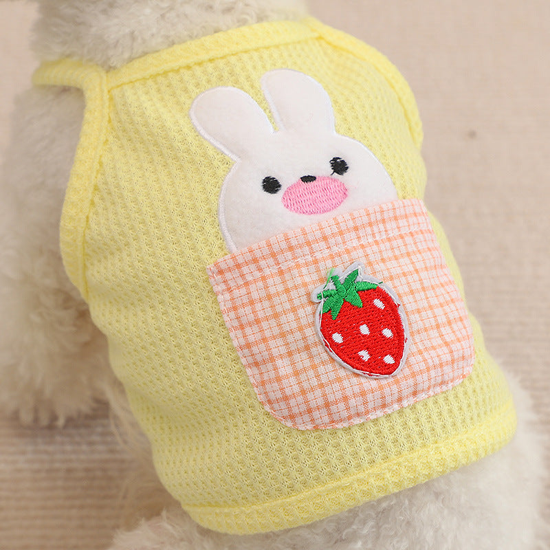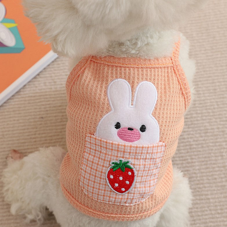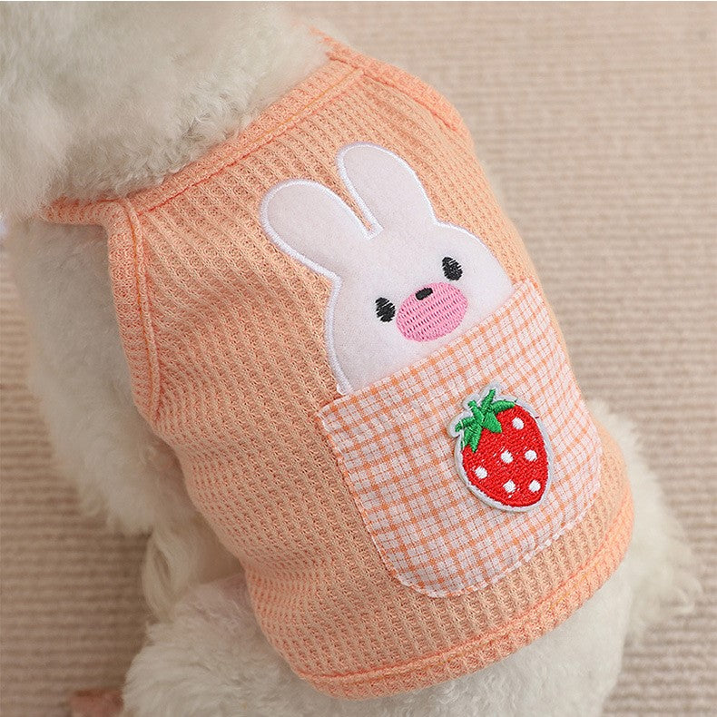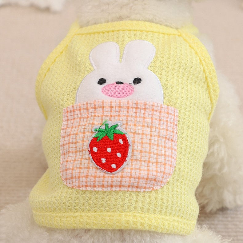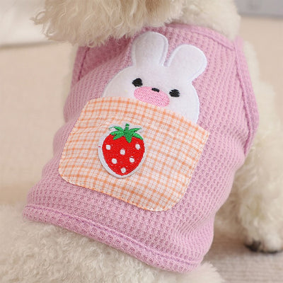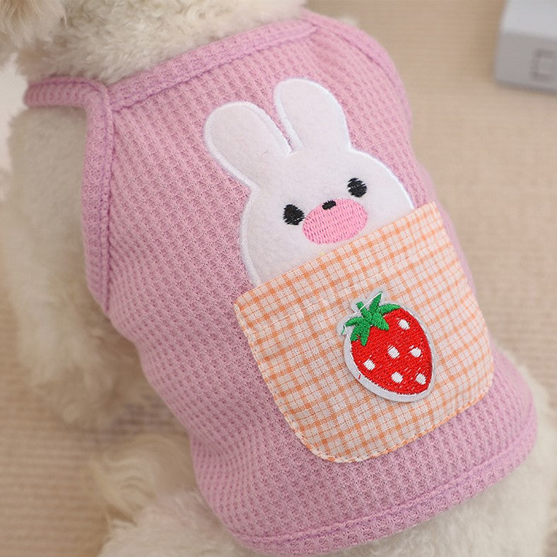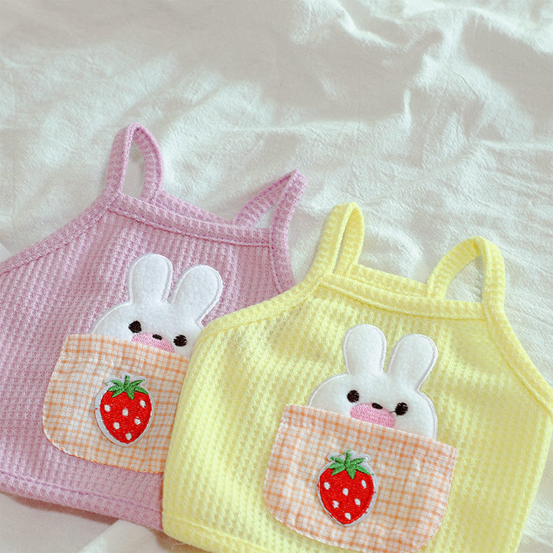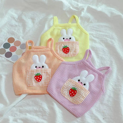This adorable cami pet top is perfect for your furry friend! Designed for cats and small dogs, it features a charming strawberry pocket bunny design that is sure to turn heads. The waffle fabric is lightweight and comfortable, making it ideal for spring and summer wear. Available in three sweet colors - yellow, purple, and carrot - this pet top is a must-have for any fashion-forward pet owner.