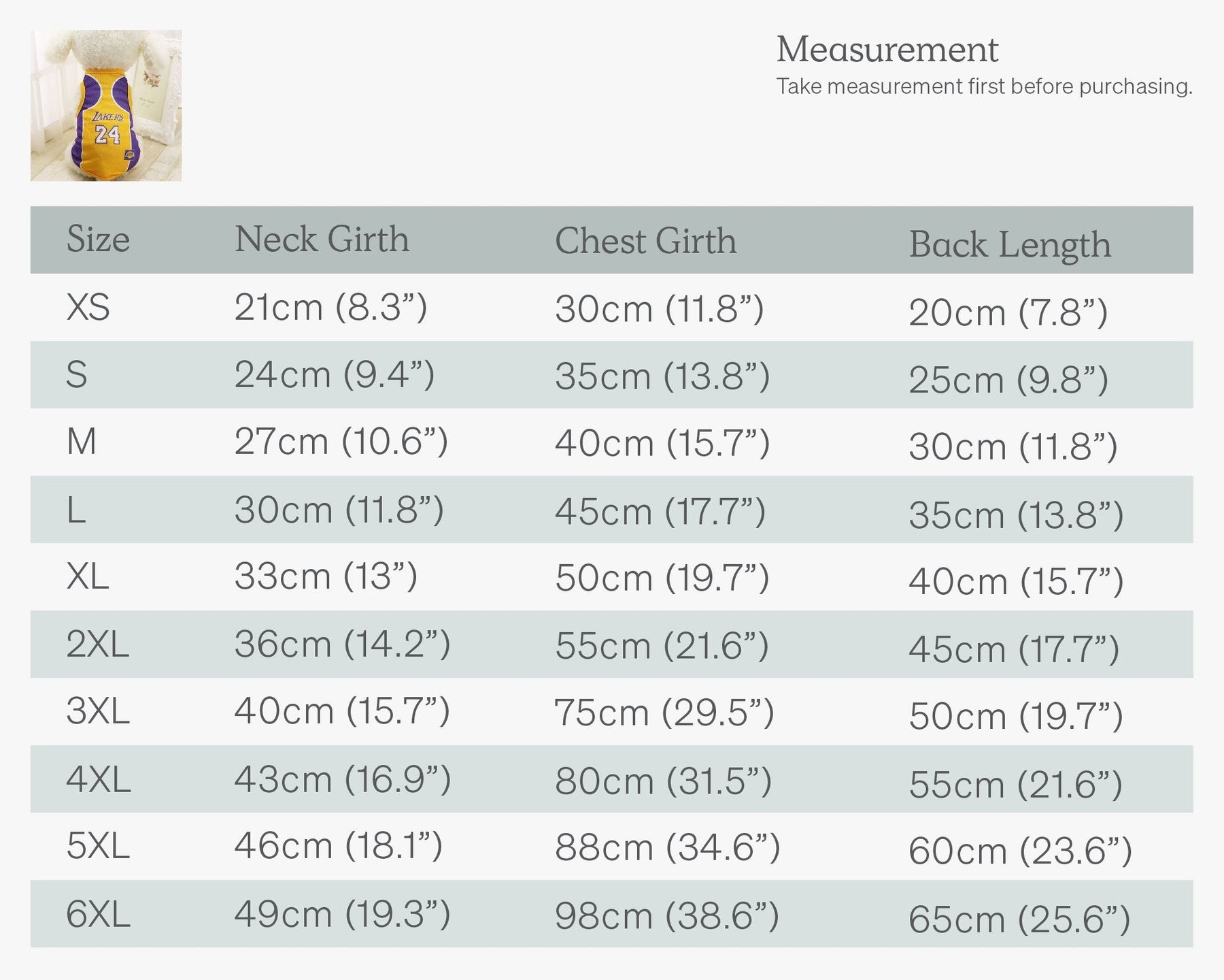 If you're unsure about the size, please add your pet's chest girth and back length measurements in the "Add Order Note" section at cart. We'll verify the sizes before shipping to ensure the perfect fit.
