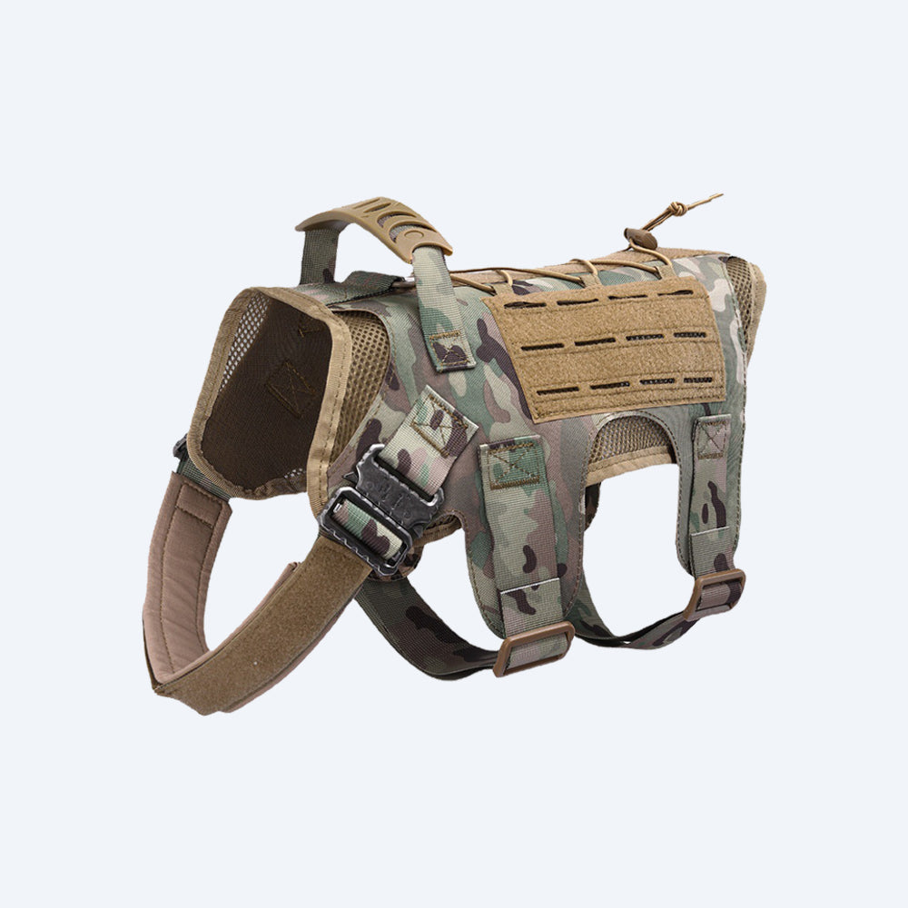 Our Tactical Dog Harness is crafted from durable 1050D nylon for ultimate strength and resilience. Engineered with your furry companion in mind, it boasts no-pull adjust straps, ensuring comfort and control during walks or intense activities. Its practical Molle system offers versatility, allowing you to attach essentials effortlessly. Perfect for working dogs, this harness is a must-have for any adventurous outing or professional task.Β
