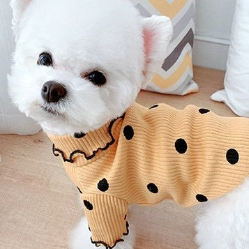Polka Dot Ruffle Sleeve Turtleneck Pet Sweater